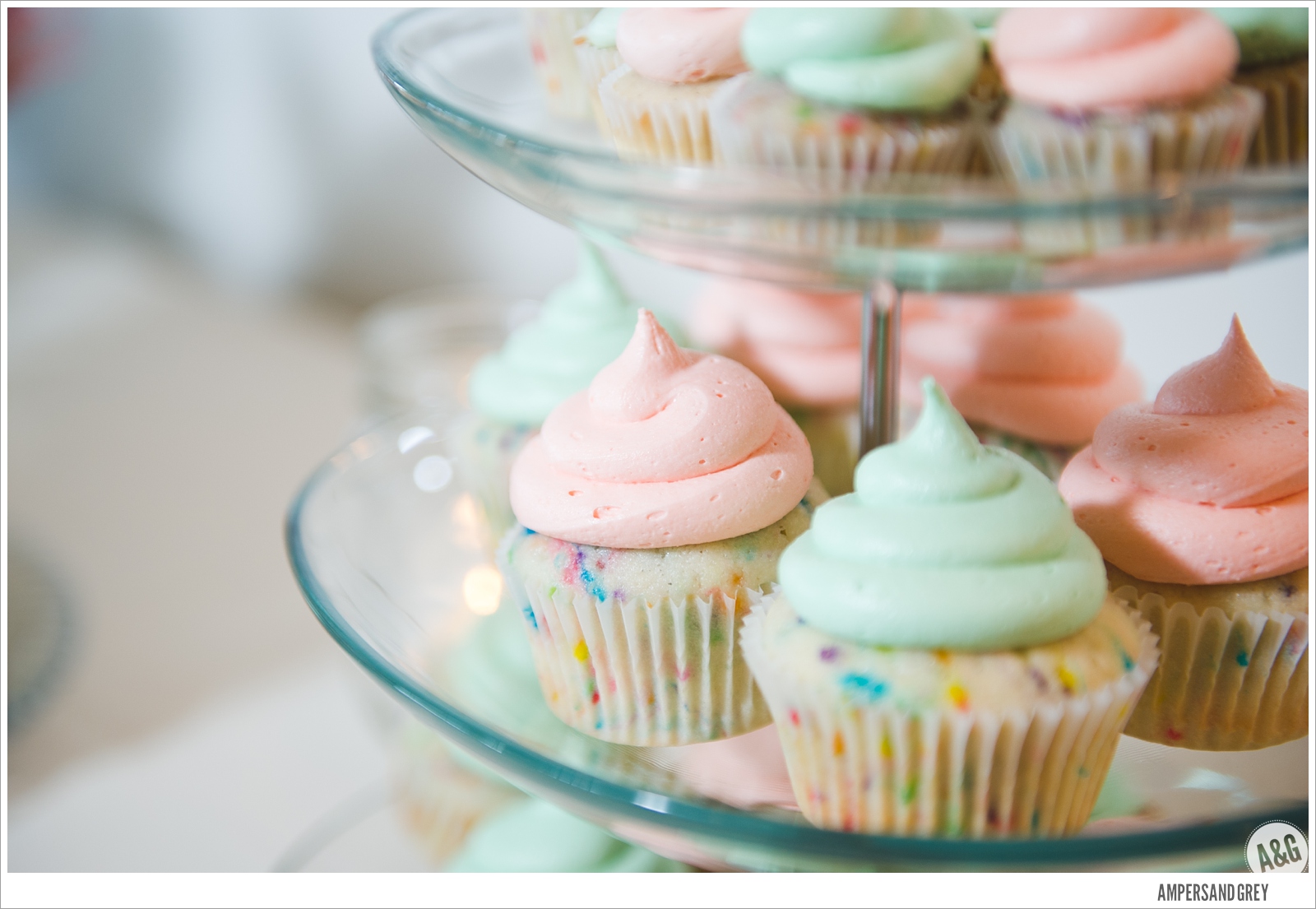 The back drop takes up most of an entire wall which set the pleasant nature inspired atmosphere. Kait kept her tables linens ivory with beautiful floral arrangements and added a bit of color with sage ribbons accenting every other chair.