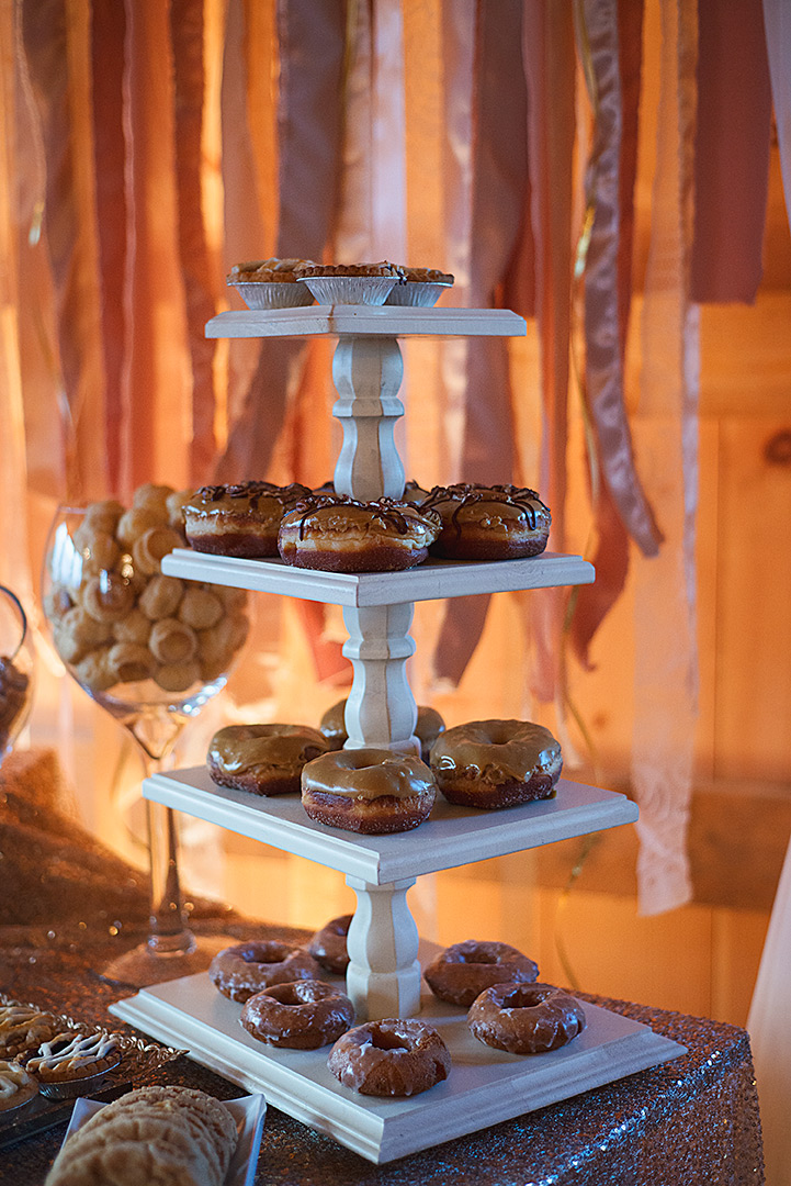 When we stepped into the barn we were speechless. It’s incredible. The main floor includes a bar, huge sliding doors along the entire length of the wall, a platform for the head table or DJ, and two giant crystal chandeliers.